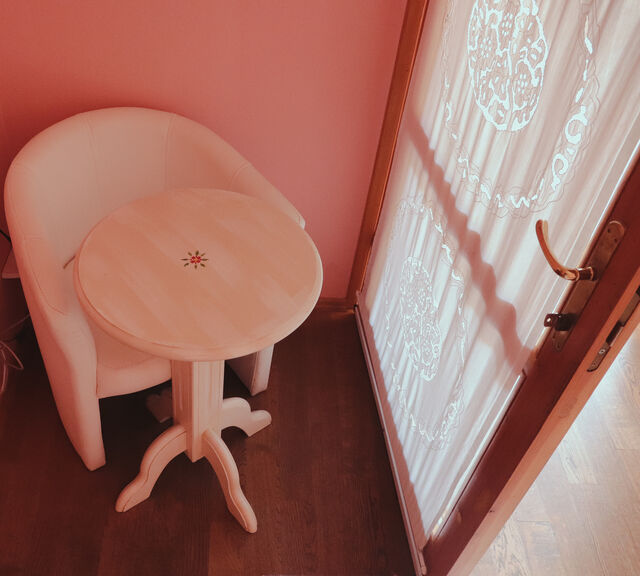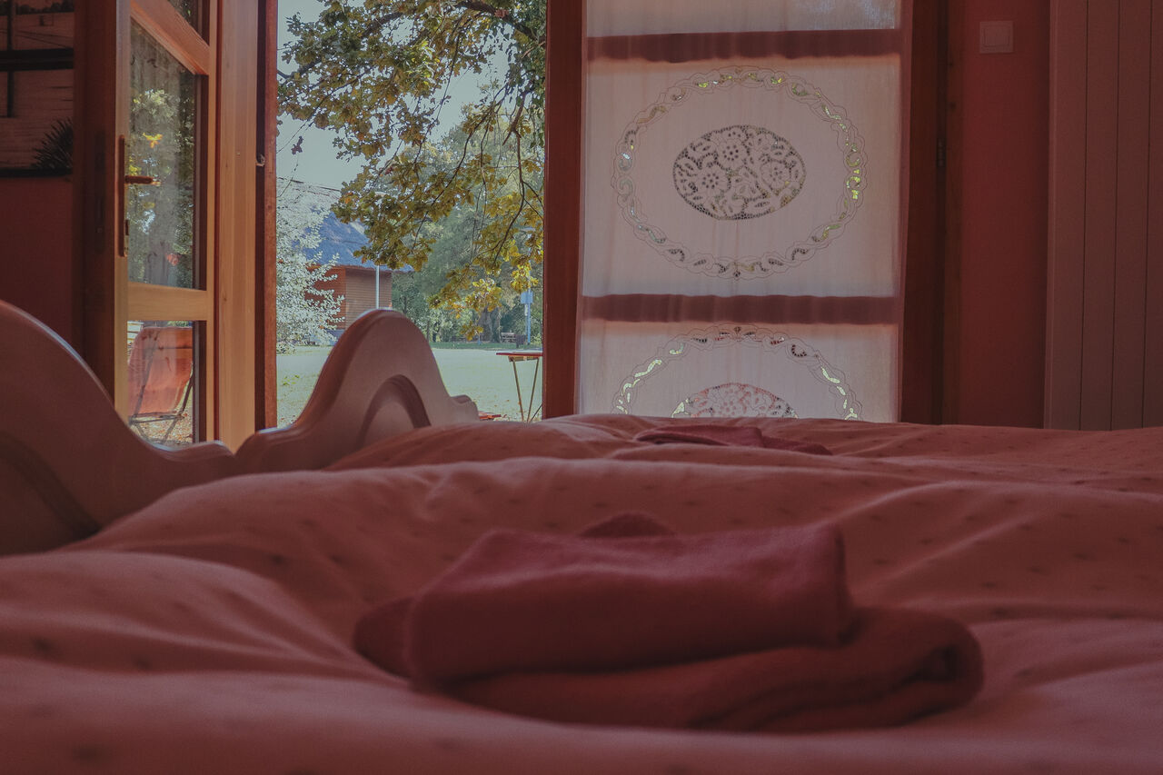 Ispred svih soba nalazi se malena natkrivena terasa s pogledom na šumu.