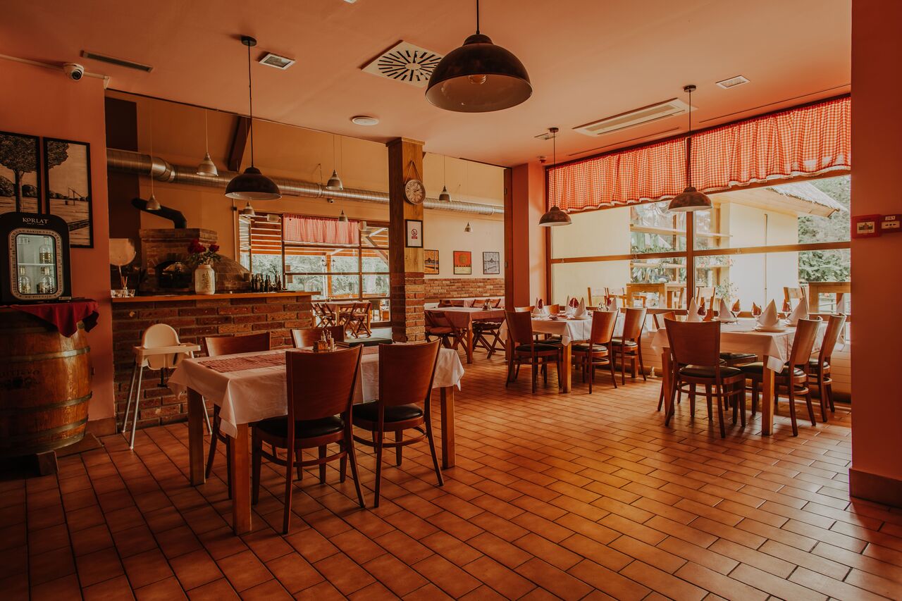 Restoran raspolaže sa 130 sjedećih mjesta, okružen ugodnim zelenilom naše prostrane vanjske terase, gdje gosti mogu uživati u svježem zraku, miru i tišini.